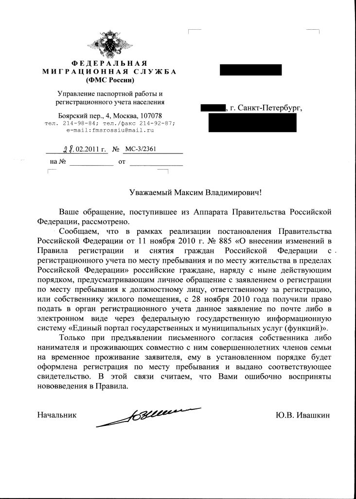 Обеспечивать в установленные законом сроки рассмотрение обращений граждан путем направления запросов в УФМС России по Санкт-Петербургу и Ленинградской области и проведения совместных проверок.